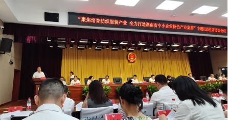 程浩南副教授在本次会议上作了题目为“激发活力、加速推进常宁湘南纺织产业基地建设为省级中小企业特色产业集群”的专题报告,从湖南省中小企业特色产业集群创建的意义、建设基本情况、加速推进常宁湘南纺织产业基地建设为省级中小企业特色产业集群的建议三个方面进行了详细讲解,积极为常宁市纺织服装产业高质量发展建言献策。并强调伟德国际victor1946作为湖南省唯一开办纺织、服装、表演专业全产业链的本科高校,我校将在人才培养、产品研发、品牌建设等方面全力支持常宁市湘南纺织产业基地建设及纺织服装产业的高发展。
