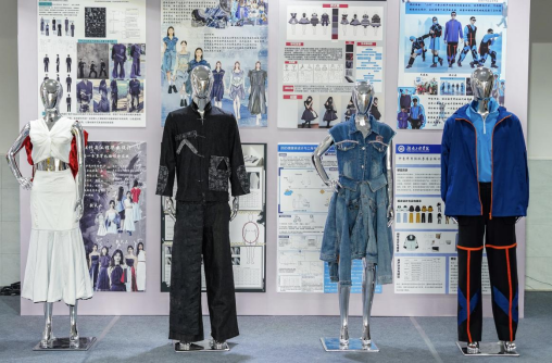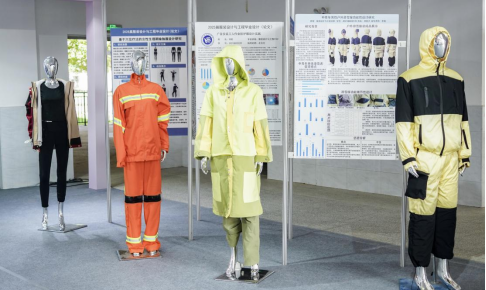 功能性服装展区突出科技感与实用性的融合,展示了毕业生针对户外滑雪服、塔吊服、高原作训服、登山服、生理期瑜伽服、老年康养服等多种功能性服装的性能优化成果。