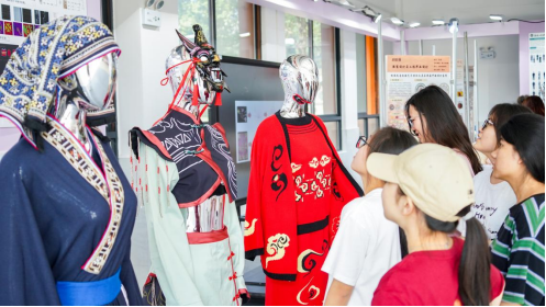 民族文化传承展区,毕业生深入探索传统民族服饰与工艺的精髓,特别是湖湘优秀服饰文化在现代服装与服饰中的应用路径,如以团扇为载体进行侗族凤鸟纹的创新应用,再比如结合数字化技术对具有百余年历史的江华过山瑶传统服饰进行1:1虚拟复原与实物1:1复原。