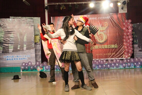 一元复始,万象更新。2014年12月24日晚7:20我院举办——“年轻,就是任性”元旦晚会在新校区明德二食堂活动中心华丽上演。激情的演唱、火热的舞蹈、风趣的小品、精彩的音乐剧„„„各类节目轮番上映,让人眼花缭乱。现场气氛热烈,笑声不。我院江灏书记,学办唐老师,罗老师和尹老师亲临现场观看了此次晚会。更邀请到中国联通的刘主任、李主任以及其他兄弟学院的主席团成员们。