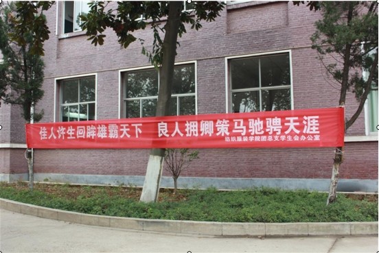 为营造女生节节日气氛,丰富学生校园文化生活,我院团总支学生会女生部开展了继趣味运动会后又一大赛事——横幅大赛。3月14日,以班级,部门,寝室为单位的参赛的作品均在北院展出,富有创意而又不失幽默的标语吸引了来来往往的师生,将女生节气氛推向高潮。