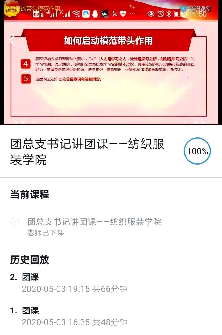 “弘扬五四精神—做优秀共青团员”线上主题团课界面