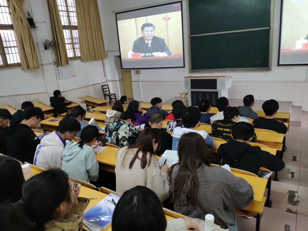 4月30日上午10:30,伟德betvlctor1946源于英国学生办公室主任唐星星、学办老师章平老师和团总支副书记刘阳熙以及纺织工程1801班、1802班同学在电教105观看纪念五四运动100周年大会直播。