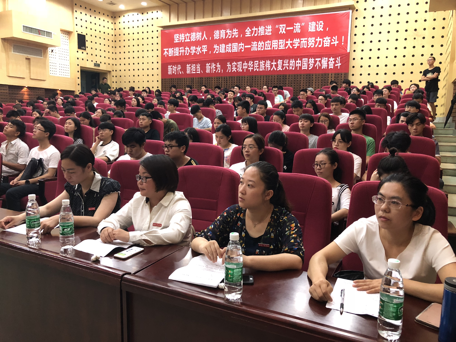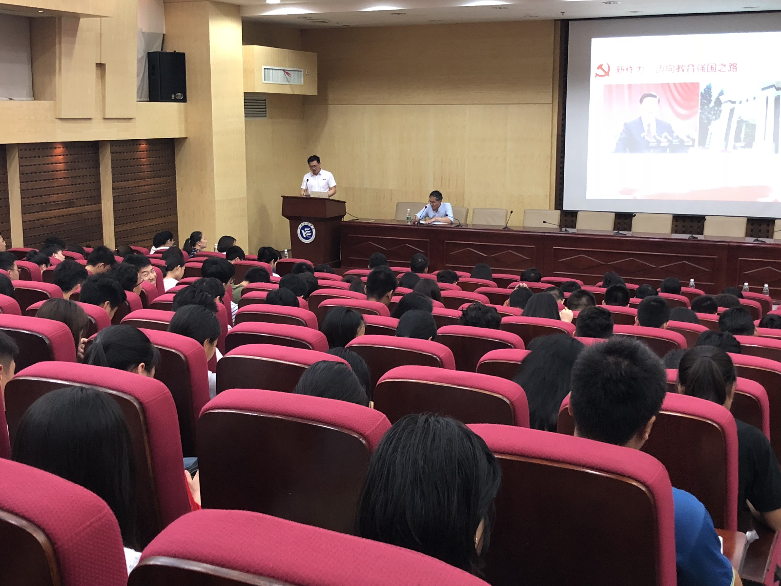 会上,应用技术学院党总支副书记徐粤宇以“新作为:迈向教育强国之路”为主题,解读了党的十九大的主题和成果。他提出教育强国怎么算强、当青春遇上教育强国怎么做两大问题,指出书写教育现代化奋进之笔要注重“两个学习”,既时时学习、处处学习。徐粤宇通过“坚持应用型本科办学定位,切实提高人才培养质量”表明我校不忘初心、牢记使命,紧扣立德树人这一根本任务,为培养高素质应用型人才、实现特色鲜明高水平工程应用型大学建设目标继续奋进来引出应当实施人民满意教育暖心之举。