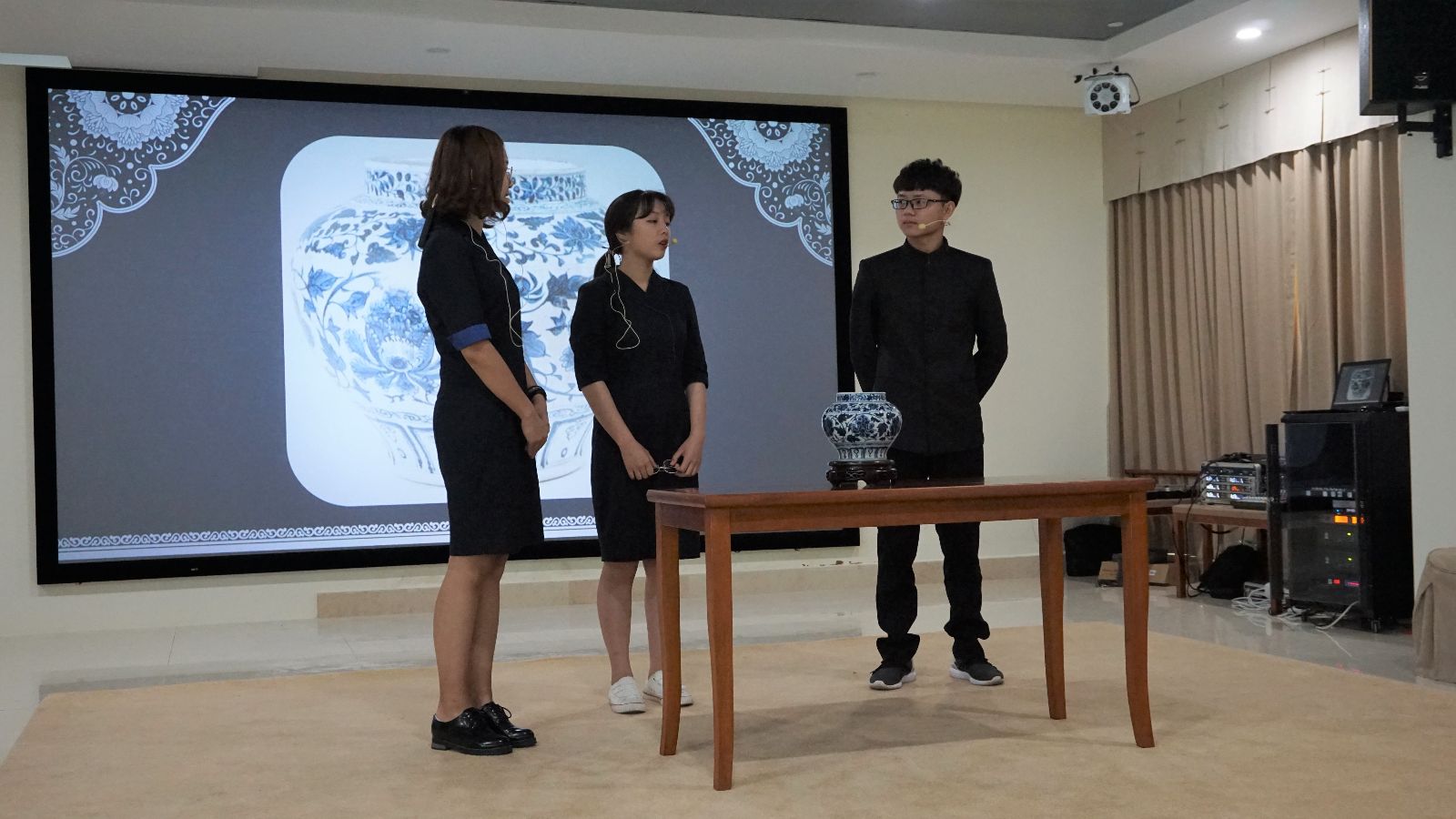 启动仪式上,我校志愿者上演了一场《元青花的前世今生》情景剧,描述了不同时代元青花的故事,详细介绍了元青花的起源、发展以及逐步盛行的历史。情景剧通过青花瓷的研究者与元青花器灵的对话,活灵活现地向大家呈现了湘潭市博物馆的镇馆之宝元青花的前世今生。