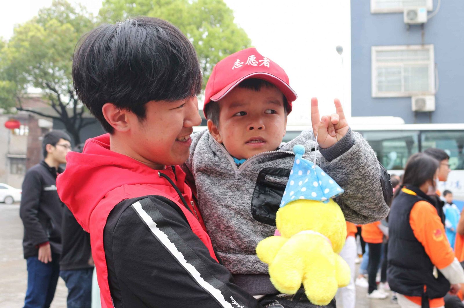 在“蓝天楼”里住着的是一群特殊的孩子们,他们天真、无邪,纯真的脸上展示的全是稚嫩。他们大部分都是被遗弃或者存在智力缺陷的,而福利院就是他们的家,工作人员就是他们的衣食父母,其他的孩子就是兄弟姐妹。很有可能,他们一辈子就呆在这个大“家”,一生都活在自我的有限世界里。看着天真的孩子们,志愿者们主动引导孩子们游戏,教孩子们唱歌、跳舞,拉进彼此间的距离。