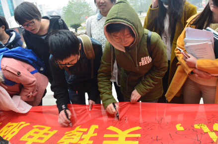 会议伊始,唐星星公布了11月份班级考核评比前三名及后三名。她对排名靠前的班级给予了充分肯定,并希望考核排名不理想的班级能够不断改正班上存在的问题,让班级常规工作运行得越来越好。二是针对本周末将举行的国家英语三四六级考试,唐星星重点为大家解读《刑法(修正案九)》中关于考试作弊已入刑的有关规定,强调诚信考试;三是期考临近,为了进一步强化我院学风建设,唐星星围绕“放下手机,关掉电脑,走进教室,走上操场,实现零挂科”这一主题,号召同学们做好考前复习工作,积极备考,切忌投机取巧,存在侥幸心理。紧接着黄自力发表讲话,她希望同学们能够积极响应学办老师的号召,在思想上和行动上都高度重视期末考试,并树立诚信参考的观念。最后,同学们在团总支学生会的组织下有序在主题横幅上签名,以表明自己诚信参考的决心。