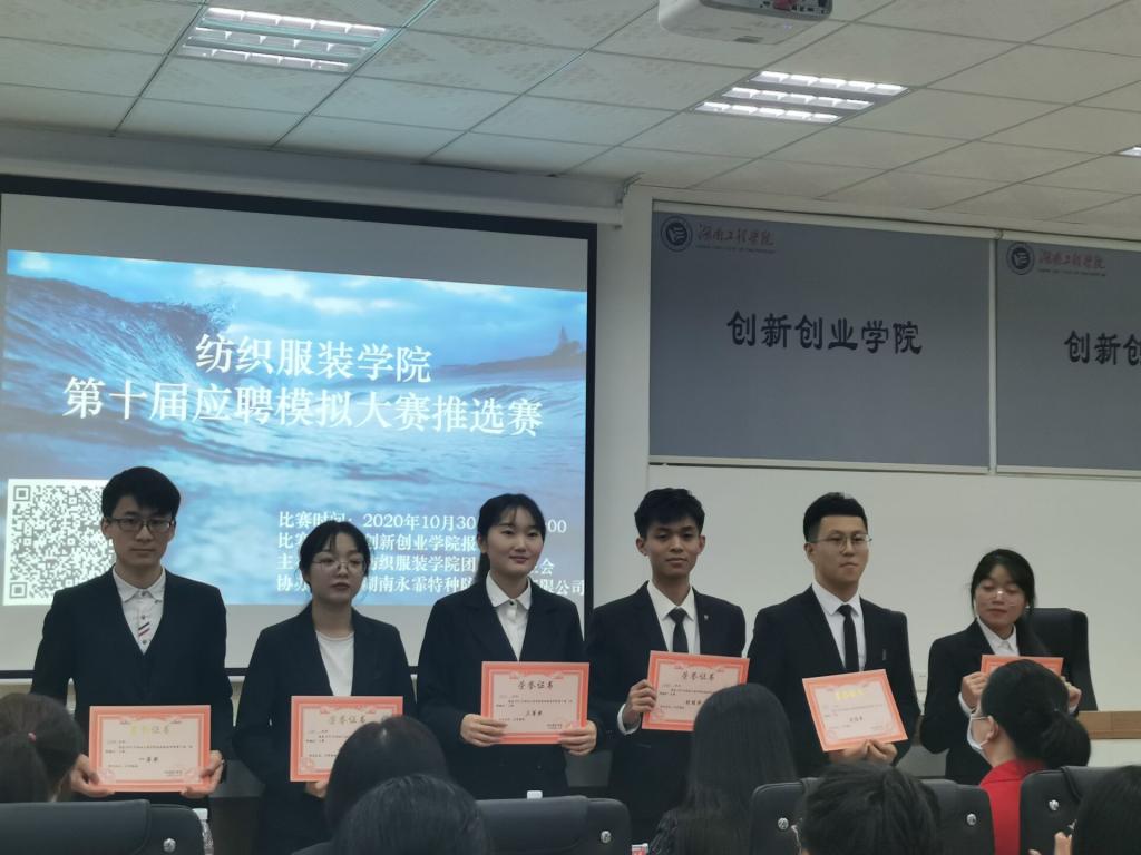 为了提升我校大学生的应变能力。让大学生熟悉招聘流程,了解招聘礼仪,弥补自身的不足,提高在校大学生的应聘能力和就业技巧。我院招生与就业指导处面向全体大三、大四学生,举办了第十届应聘模拟大赛。由伟德国际victor1946房主服装学院团总支学生会主办,湖南永霏特种防护用品有限公司协办的应聘模拟大赛(院)决赛于2020年10月30日晚19:00在创新创业学院学术报告厅成功举行。