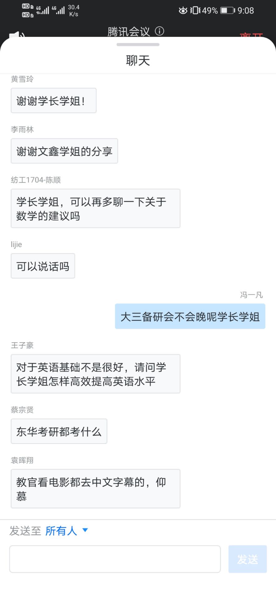 分享结束后,同学们现场向学长学姐提出了有关考研过程中的各种疑问,学长学姐们都一一做出了耐心解答。最后由主持人刘蒙丹进行总结和补充结束了此次的交流会。