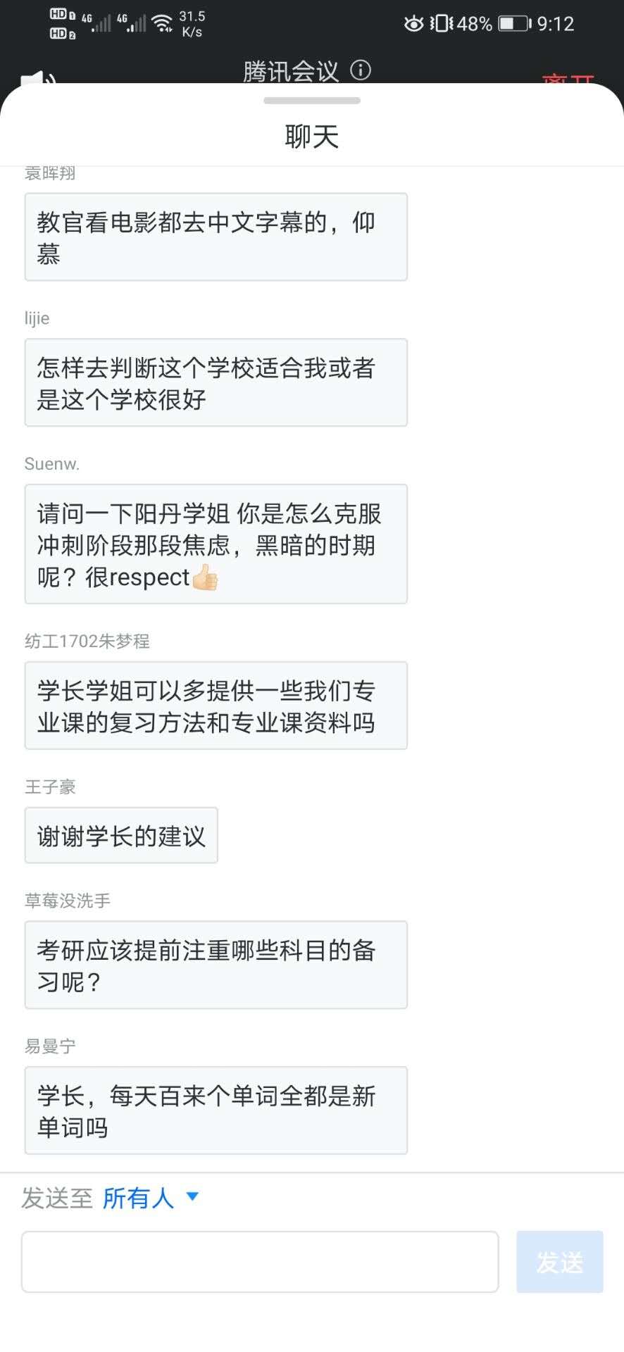 2020年6月20日,伟德betvlctor1946源于英国于腾讯会议平台成功举办了2020年线上考研经验交流会。参加本次座谈会的有参与分享的教师代表和全校范围内的考研同学。此次座谈会由伟德betvlctor1946源于英国的贺晨亮老师,余奕老师,杨涵老师,以及今年顺利考上研究生的三位16级学生代表:阳丹、吴拓明、文鑫担任主讲人,由刘蒙丹同学担任主持。会议现场大家交流热情深入,本次交流会人数高达120人。