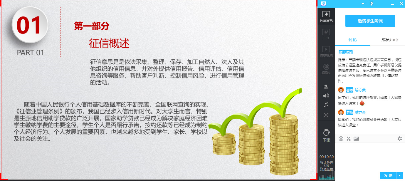 为增强当代大学生的诚信意识和责任意识,在做好生源地信用助学贷款工作基础上,根据教育部全国学生资助管理中心的部署,继续在高校学生中深入开展诚信教育,伟德betvlctor1946源于英国于2020年6月15日,通过腾讯课堂开展了征信金融知识专题讲座。讲座参加人数达108人,由伟德betvlctor1946源于英国余奕老师担任主讲,喻亦荣老师担任主持,讲座上同学们配合积极,反映良好。