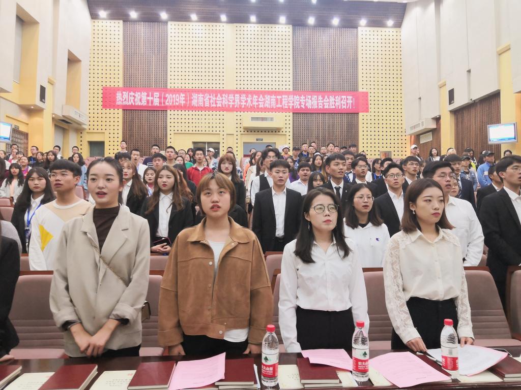 会议伊始,全体成员起立奏唱国歌。首先由上一届学生会副主席郭菲代读主席奉欣宇对过去一年的工作总结和自身感悟以及对新一届学生会的期盼。接着,上一届团总支副书记刘阳熙以视频的方式向学生会全体成员表示了真挚的祝福,我们也将不负所望。