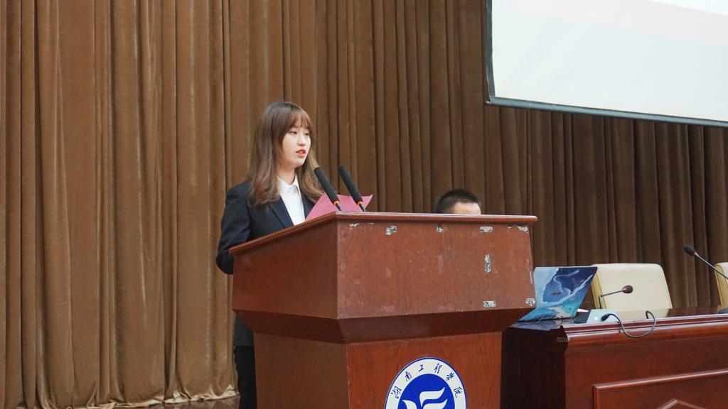 随后,新一届团总支副书记黄辉武和学生会主席乔梦瑶作为新一届学生会干部代表进行了就职演说。他们表示愿意与学生会成员一起开拓创新,勇于改革,共同努力,并对本届学生会的工作提出了构想,在落实规范化管理的基础上进一步完善制度建设,不断提高干部综合素质。
