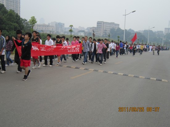 早上8点整,伟德betvlctor1946源于英国学生党员组织大一新生在学海花园集合完毕,学院学生第一党支部书记、学办主任唐星星宣布活动正式开始,晨跑队伍带着“低碳生活 从我做起”的宣传横幅出发,经新北高速,到达新校区时,不少外院学生为表示对低碳校园生活的支持,也自觉参与到宣传队伍中来。相信这越来越壮观的队伍,证明低碳校园生活理念正得到广泛的认可与践行。