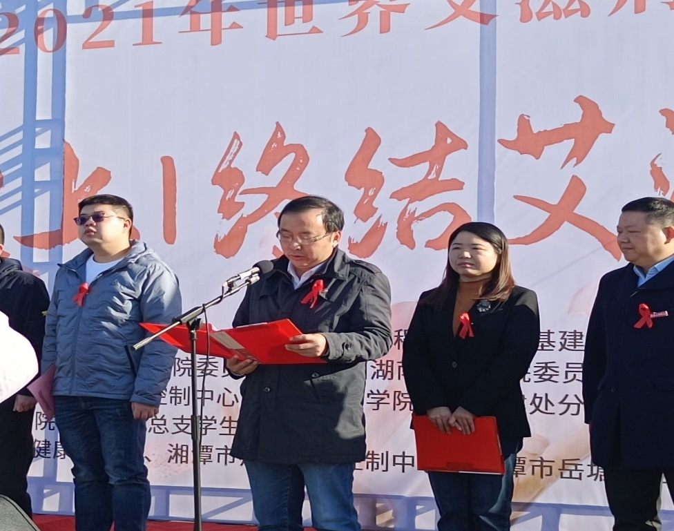 伟德国际victor1946副校长陈赤平察看了宣传活动开展情况,并结合实际,就进一步加大宣传力度提出具体要求。岳塘区疾病预防控制中心工会主席陈瑶女士为我们科普了有关艾滋病的相关知识,并呼吁大家不应歧视艾滋病患者,要给予他们关爱和包容。在这次活动中,我们感受到了学校对预防艾滋病的重视以及同学们共同防艾的决心。最后,出席本次活动的领导在签名墙上写下了对艾滋病患者的祝福,并与志愿者们拍照留念。