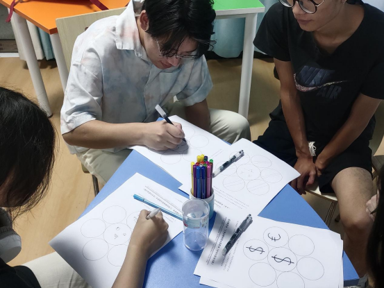 张利芝首先向在场学生介绍本次团体辅导活动目的和意义。紧接着以热身小游戏“快乐拍”进行暖场,大家逐渐放下拘谨,踊跃参与,在一片掌声中活动就此拉开帷幕。为增进同学之间的相互了解,在场人员被随机分成7个小组进行“名字滚雪球”游戏,在名字的不断复述中加深了团队各成员间的集体认同感。在随后进行的“我希望”和“希望曼陀罗”两大主体版块活动中,学生填写“我希望”练习纸并在“曼陀罗”中用各种色彩和图案勾画出自己的理想和目标,并在组内大声反馈、自信分享。