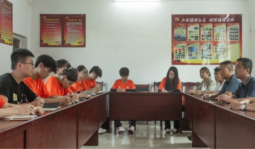 下午3点,伟德betvlctor1946源于英国“东‘纺’红”大美乡村编“织”团抵达铺坪村与我校驻村帮扶工作队队长刘树忠、村支书张凯及村支两委会面,并召开部署工作会议。刘树忠对志愿者的到来表示衷心感谢,并简要介绍铺坪村村情村貌以及驻村工作队驻村期间脱贫攻坚成果和因地制宜探索的致富之路,随即从产业振兴、人才振兴、文化振兴、生态振兴及组织振兴五个方面,深入浅出地分析了目前铺坪村乡村振兴战略实施过程中存在的问题。实践团带队老师龚旭昱介绍了此次活动的目的与行程计划安排。张凯对我校多年来给予铺坪村的帮助与支持表达了感激之情,希望同学们发扬吃苦耐劳的精神,借助此次活动深入基层,投身于社会实践,实现自身价值。同时嘱咐大家注意自身安全,并预祝此次“三下乡”活动圆满完成。