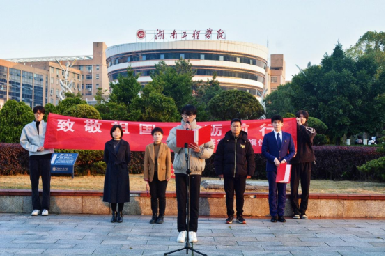 学院学生工作办公室主任张利芝发表国旗下的讲话。她指出,当代青年学生需坚定理想信念,将爱国之心、人生之志化作报国之行,坚定与祖国同呼吸、共命运的信念,将热血青春投入到中国特色社会主义现代化国家的伟大事业中,以实现中华民族伟大复兴为己任,以学习造就强国,以青春共创辉煌,鹏程万里,以扶摇直上的青年意气接过历史的接力棒。